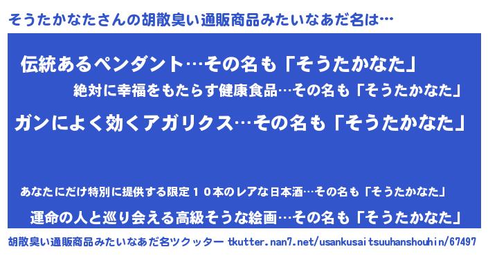| 欧米人風あだ名 | 『そうたかなた・ステッグマイヤー』 |