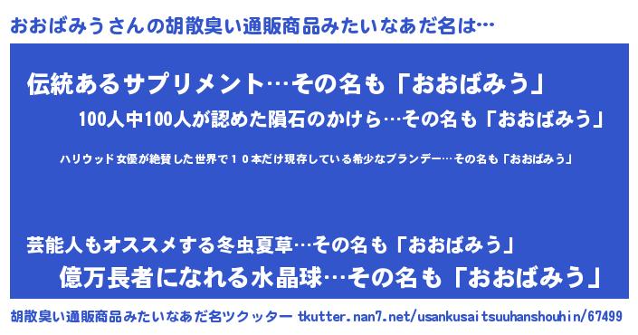 | 欧米人風あだ名 | 『ダレノガレおおばみう』 |