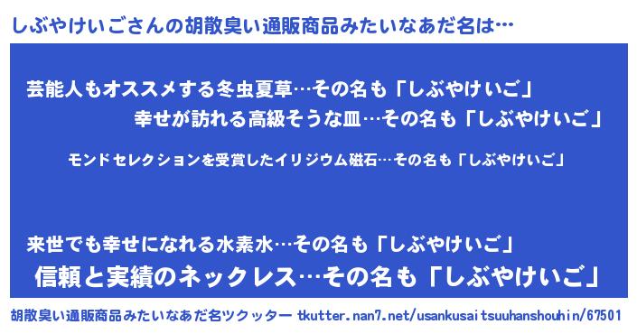 | 伝説のあだ名 | 『救世主となる占い師しぶやけいご』 |