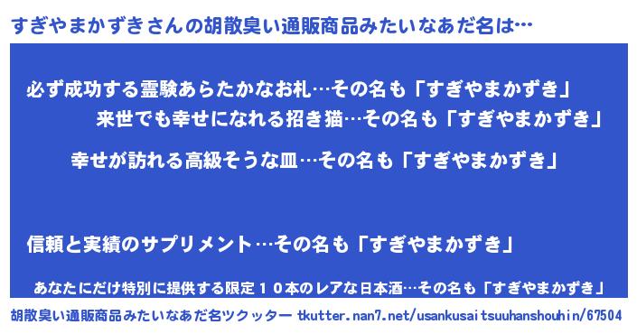 | 男性向けラノベタイトル風あだ名 | 『やはりすぎやまかずきの青春ラブコメはまちがっている 』 |