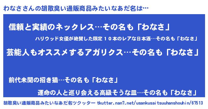 | ヘコむあだ名 | 『わなっ子』『つくし』『わなにゅー』 |