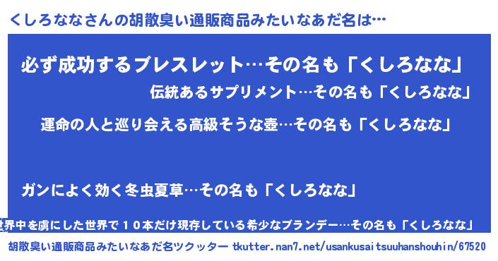 | 伝説のあだ名 | 『最強の忍者くしろなな』 |