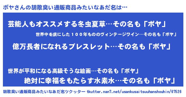 | ヘコむあだ名 | 『ボヤふぇ~』『ボヤ(苦笑)』『牛乳』 |