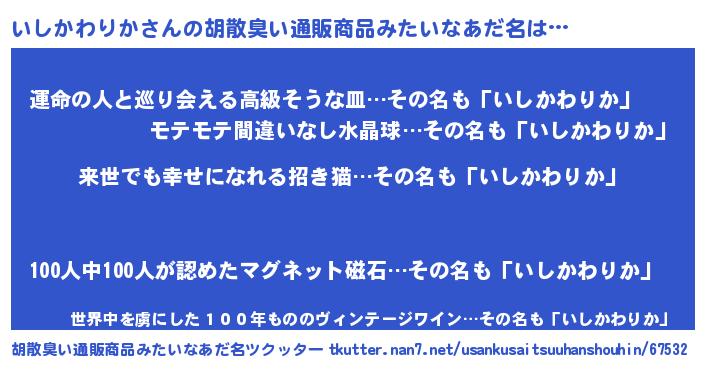| 意味不明あだ名 | 『永久保存いしかわりか』 |