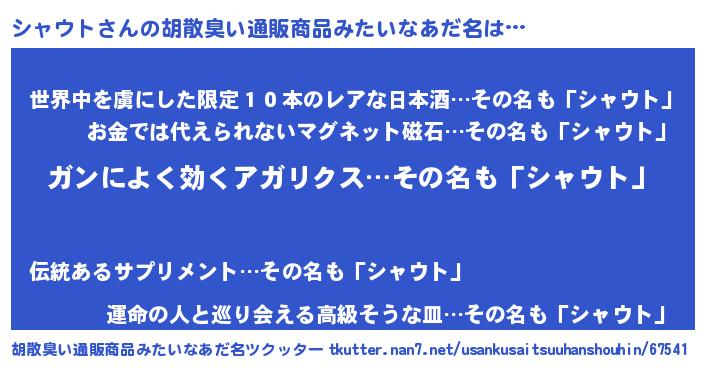 | 意味不明あだ名 | 『自称シャウト』『シャウトフォーエバー』 |