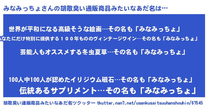 | 意味不明あだ名 | 『自称みなみっちょ』 |