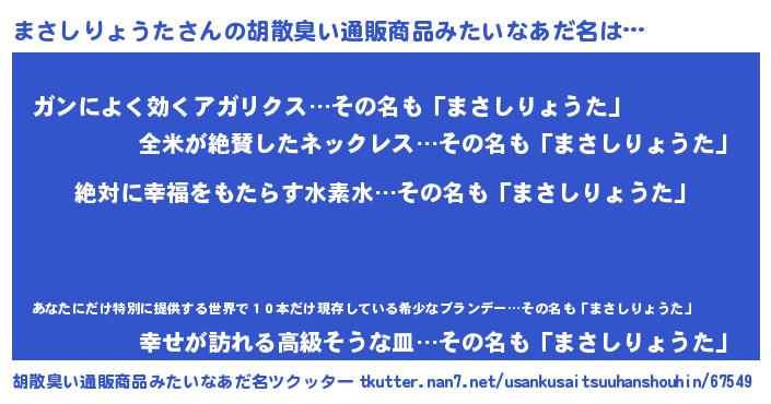 | 意味不明あだ名 | 『永久保存まさしりょうた』 |