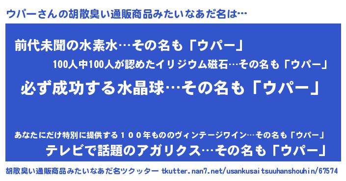 | ヘコむあだ名 | 『ウパもー』『ウパー(爆)』 |