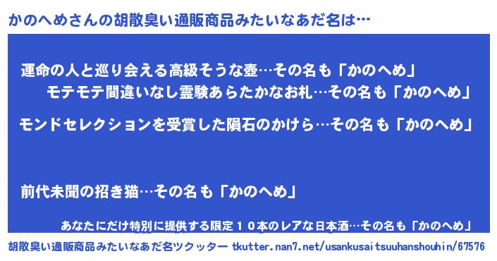 | 肩書あだ名 | 『かのへめ上級大将』『かのへめ助教授』 |