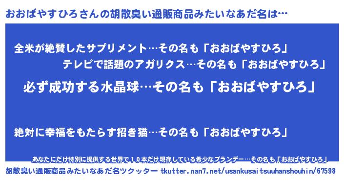 | 肩書あだ名 | 『おおばやすひろ店長』 |