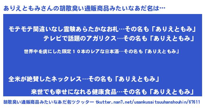 | ヘコむあだ名 | 『ありにゅー』『ありえともみ(遠い目)』 |