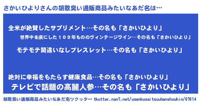 | ポケモン風あだ名 | 『サカチュウ』『ヒサカイヒヨリ』 |