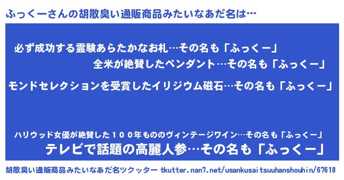 | ヒーロー風カッコイイあだ名 | 『天空の使者ふっくー』『炎刃騎士フッ』 |