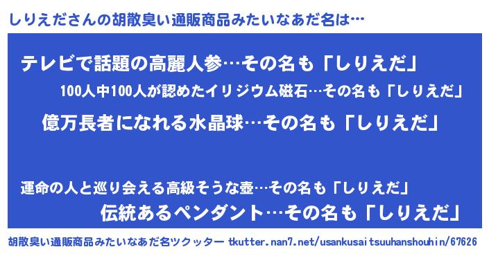 | 意味不明あだ名 | 『ペロリンしりえだ』『自称しりえだ』 |