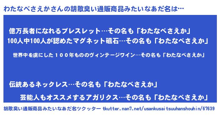 | 欧米人風あだ名 | 『ダレノガレわたなべさえか』 |