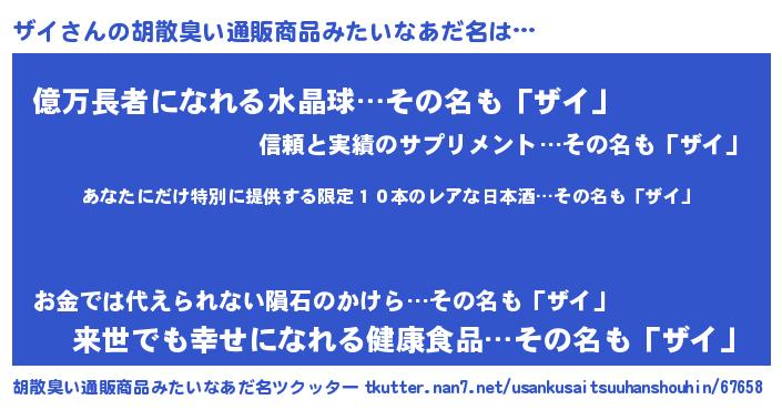 | 男性向けラノベタイトル風あだ名 | 『この素晴らしい世界にザイを!』 |