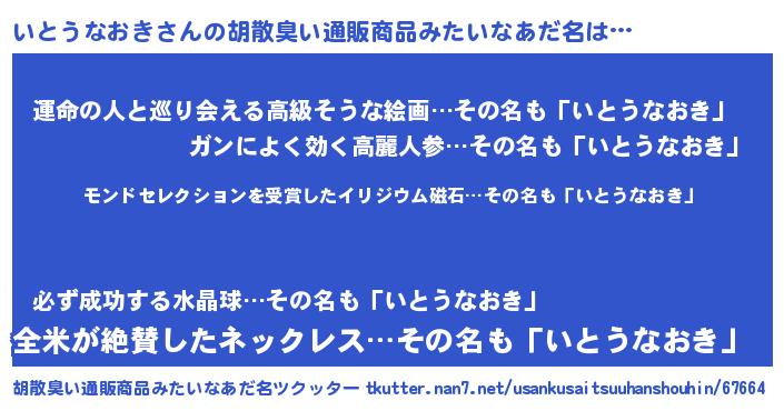 | 伝説のあだ名 | 『救世主となる占い師いとうなおき』 |