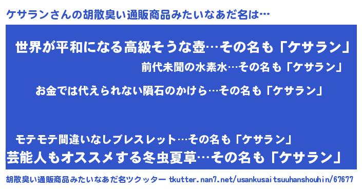 | 女子向けラノベタイトル風あだ名 | 『ケサラン恋絵巻』『闇のケサラン』 |