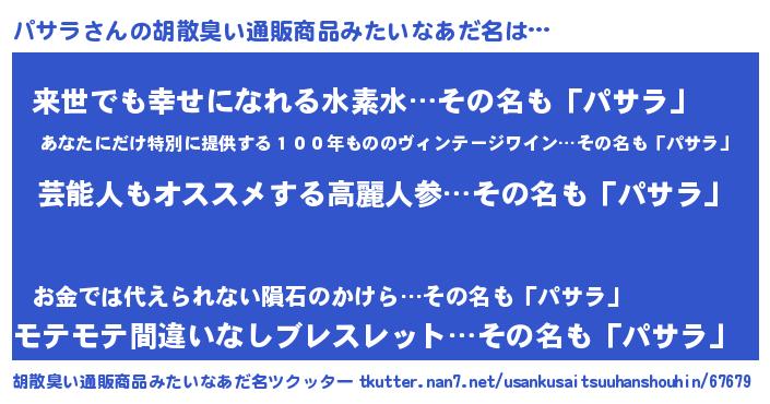 | ヘコむあだ名 | 『パサラ(小並感)』『パサっふぃ~』 |