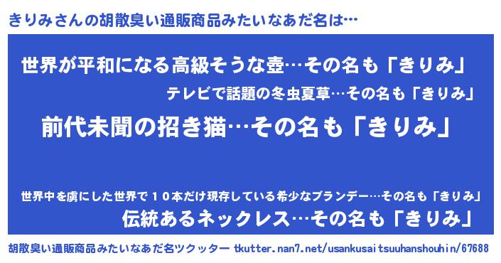| 意味不明あだ名 | 『永久保存きりみ』『きりみフォーエバー』 |