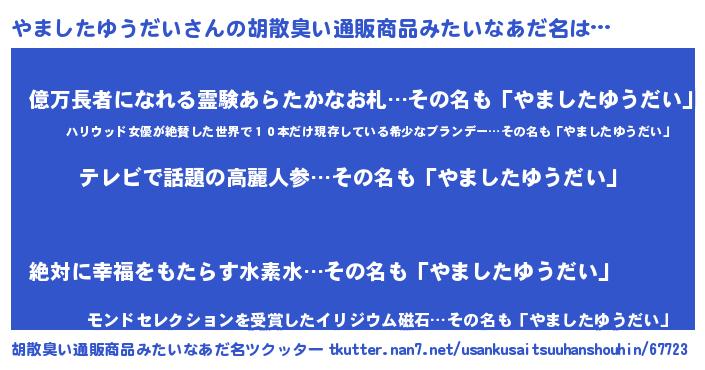 | ヘコむあだ名 | 『やまふぇ~』『やましたゆうだい(笑)』 |