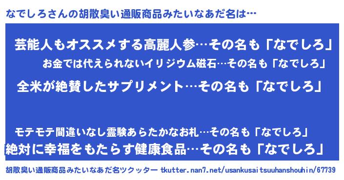 | 意味不明あだ名 | 『とにかく怪しいなでしろ』 |