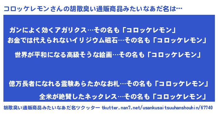 | 男性向けラノベタイトル風あだ名 | 『転生したらコロッケレモンだった件』 |