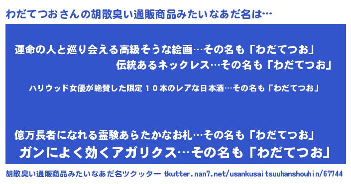 | 伝説のあだ名 | 『秘められし忍者わだてつお』 |