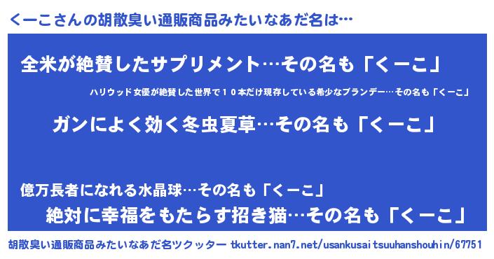 | 意味不明あだ名 | 『自称くーこ』『とにかく怪しいくーこ』 |