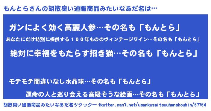| ヘコむあだ名 | 『もんとら(笑)』『酢こんぶ』 |