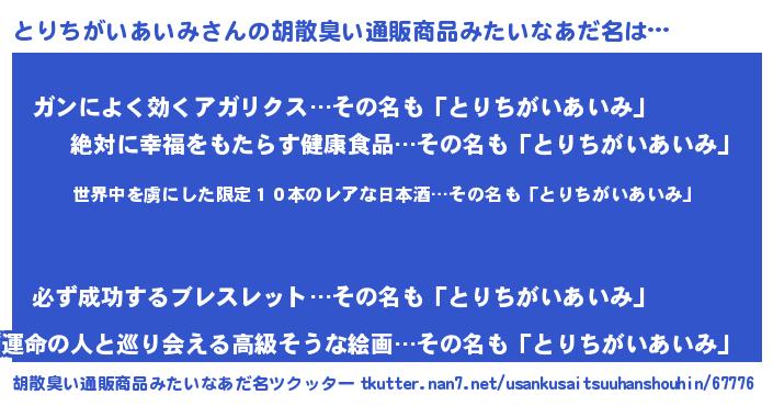 | 意味不明あだ名 | 『住所不定無職とりちがいあいみ(62歳)』 |