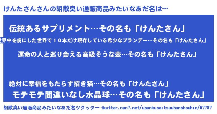 | 意味不明あだ名 | 『けんたさんフォーエバー』 |