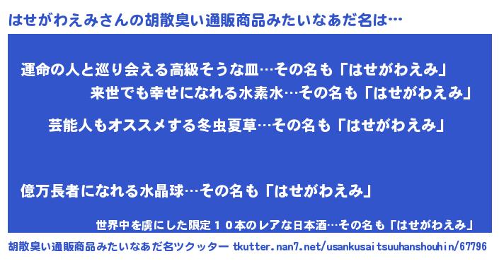 | 意味不明あだ名 | 『自称はせがわえみ』 |