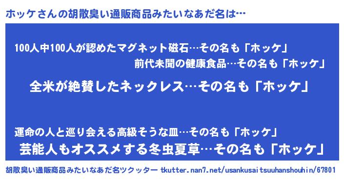 | ポケモン風あだ名 | 『ヒホッケ』『ホックウザ』 |