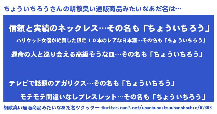 | 意味不明あだ名 | 『ちょういちろうフォーエバー』 |