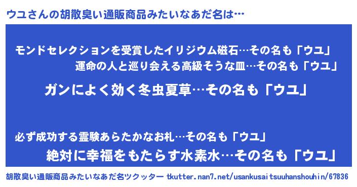 | ヘコむあだ名 | 『ウユ(遠い目)』『酢こんぶ』 |