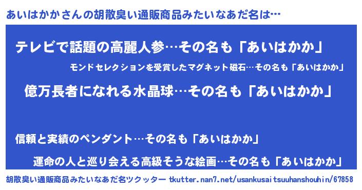 | 欧米人風あだ名 | 『トリンドルあいはかか』 |
