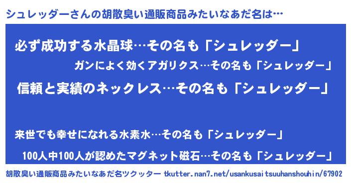 | ヒーロー風カッコイイあだ名 | 『暗黒騎士シュ』『スーパーシュレッダー』 |