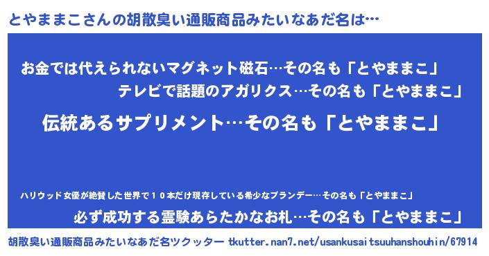 | 意味不明あだ名 | 『とにかく怪しいとやままこ』 |