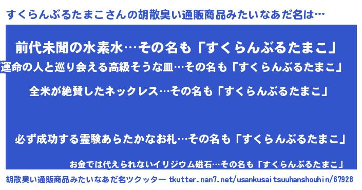 | ヘコむあだ名 | 『すく太郎』『すくらんぶるたまこ(遠い目)』 |
