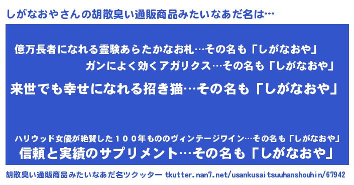 | 肩書あだ名 | 『しがなおや先生』『しがなおや店長』 |