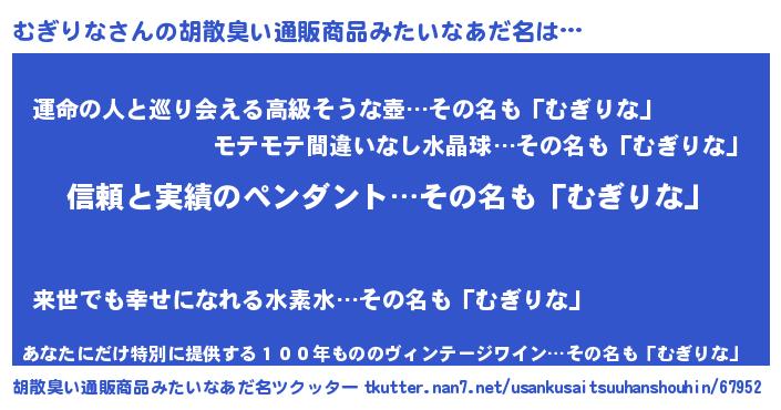 | 肩書あだ名 | 『むぎりな中将』『むぎりな塾長』 |