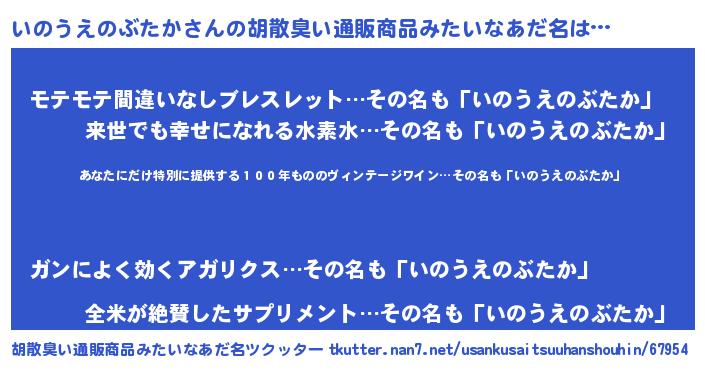 | 意味不明あだ名 | 『住所不定無職いのうえのぶたか(5歳)』 |