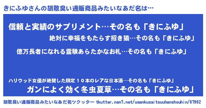 きにふゆさんの胡散臭い通販商品みたいなあだ名をツクッター!
