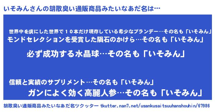 | 意味不明あだ名 | 『ペロリンいそみん』『自称いそみん』 |