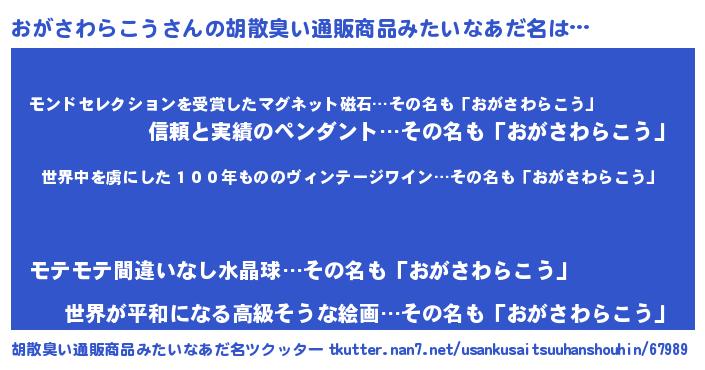 | 欧米人風あだ名 | 『ダレノガレおがさわらこう』 |