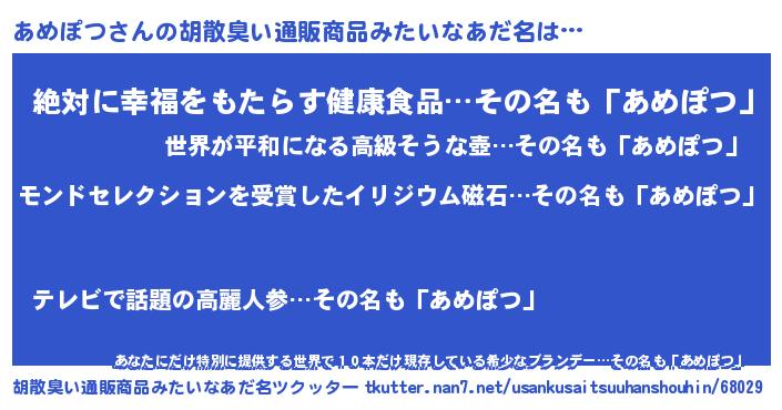 | ヘコむあだ名 | 『あめぽつ(爆)』『つくし』 |