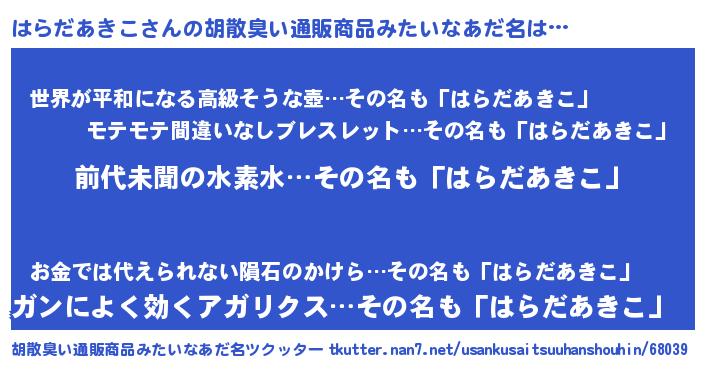 | ヘコむあだ名 | 『はらだあきこ(苦笑)』『豆乳』 |