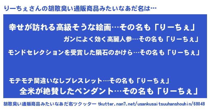 | ヒーロー風カッコイイあだ名 | 『天空の使者りーちぇ』『幻影騎士リー』 |