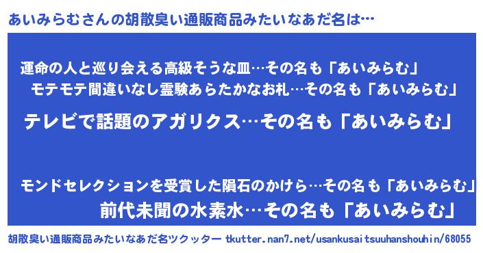 | 意味不明あだ名 | 『自称あいみらむ』『永久保存あいみらむ』 |